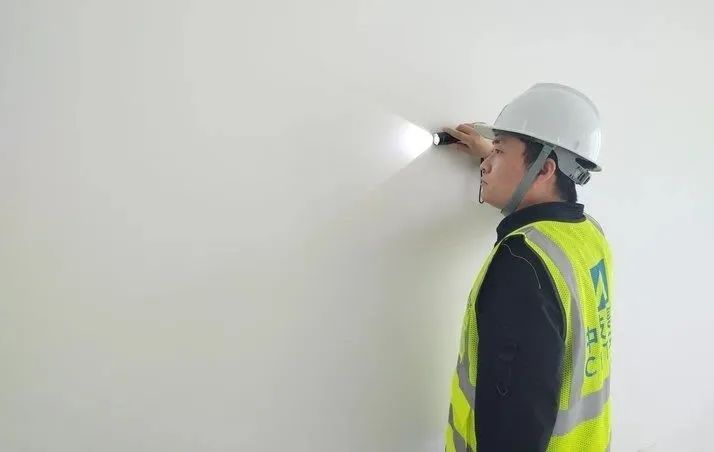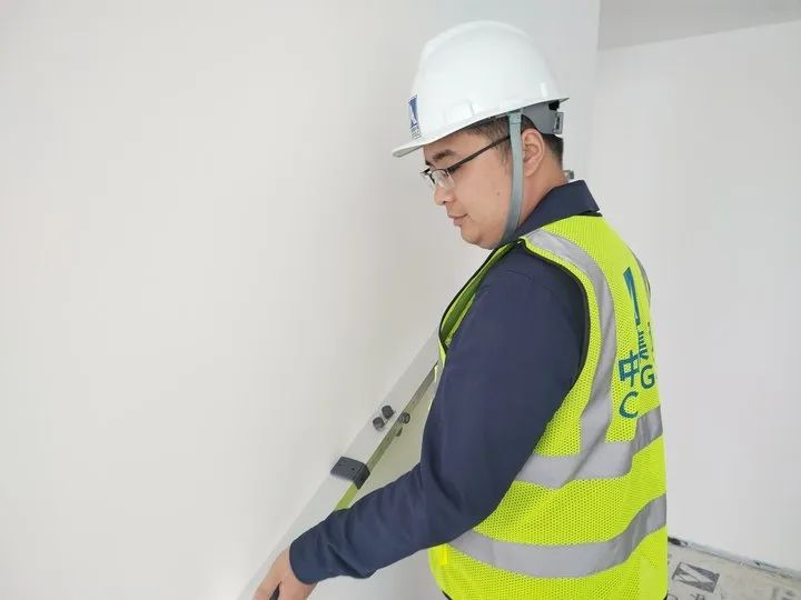 他的工作與瓷磚、膩子、水泥打交道,需要時刻手拿靠尺、角尺等檢測工具對項目乳膠漆墻面進行實測實量;手拿空鼓錘對現場墻磚進行空鼓排查,對每個部位全面排查、查找隱患,保證施工質量。這樣的檢測動作,每天要重復上千次,就是為了優質履約,為業主提供一個安全住所。