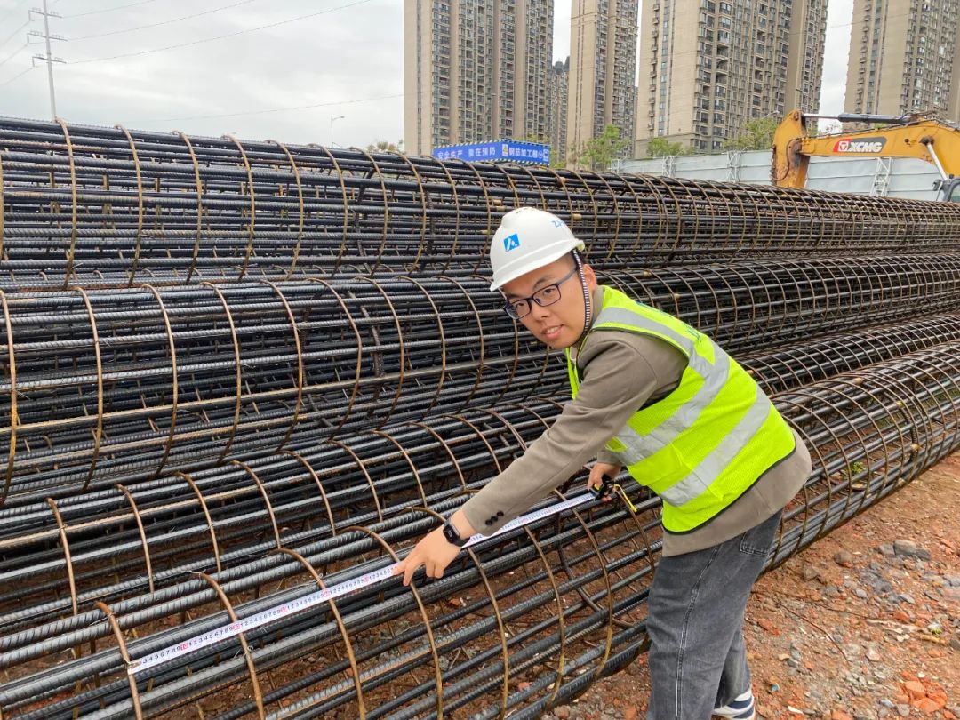 在面對主筋間距允許偏差在10mm內、箍筋間距和螺旋筋間距要控制在20mm以內、鋼筋籠長度應控制在50mm以內等諸多樁基鋼筋籠驗收要求時,他對每一個檢測驗收項目認真負責,確保同時滿足鋼筋成本可控和設計要求,同時保證測量結果的準確和可靠,超出項目管理目標預期。