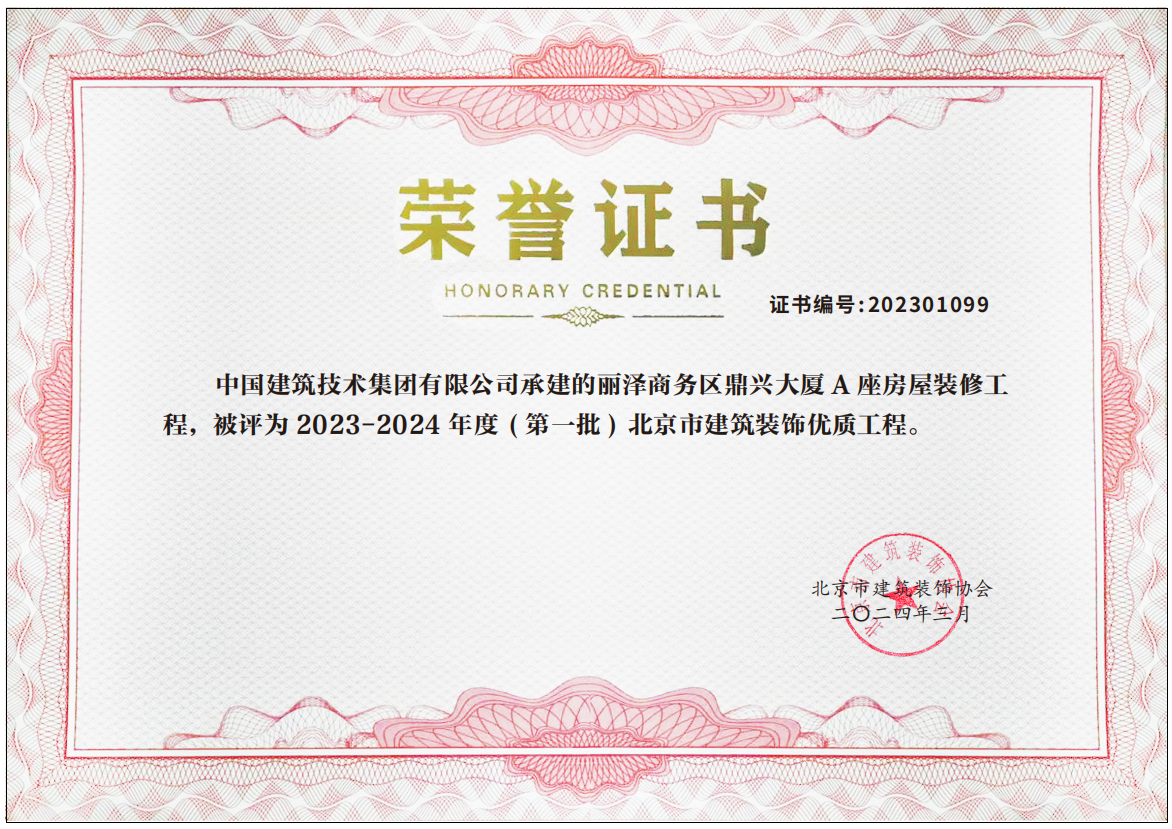 近日,由中國(guó)建技承建的麗澤商務(wù)區(qū)鼎興大廈A座房屋裝修項(xiàng)目、北京大學(xué)醫(yī)學(xué)部圖書館工程施工總承包項(xiàng)目和北京市海淀區(qū)豐豪東路9號(hào)院中創(chuàng)芯中心某公司改造項(xiàng)目榮獲2023-2024年度(第一批)北京市建筑裝飾優(yōu)質(zhì)工程獎(jiǎng)。