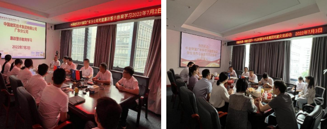 聯合共建交流活動的開展,進一步增強了黨組織的凝聚力和戰斗力,更加堅定了黨員們愛黨、信黨、跟黨走的理想信念,激勵了黨員們以昂揚的精神風貌和飽滿的工作熱情,立足實踐,忠誠擔當,為集團公司高質量發展貢獻力量!下午,廣東分公司黨支部組織開展廉政警示教育專題黨課,黨員們現場觀看廉政教育宣傳記錄片,圍繞廉潔教育主題進行座談交流,大家紛紛表示,要以案為鑒,不斷加強黨性修養,堅定理想信念,堅守法律底線,筑牢廉政防線。
