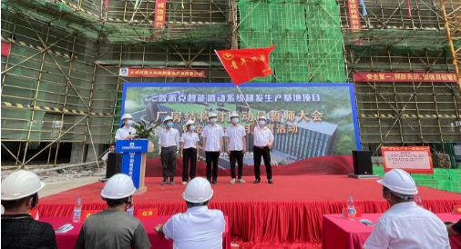 ?6月25日,廣東分公司在中山歐派克智能滑動系統研發生產基地項目舉行廠房結構封頂動員誓師大會暨安全生產月活動宣貫活動。