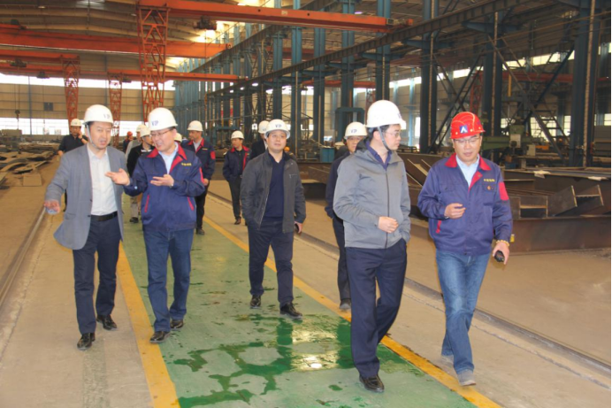 4月7日下午,中技集團副總裁周宜虎一行到天津鋼結構分公司調研工作。中技集團副總裁馬驥、狄彥強,紀委書記李小陽,總工程師李東彬陪同調研。