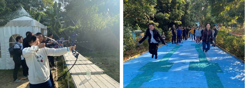 團(tuán)建活動(dòng)在趣味比賽中拉開帷幕,通天塔、勇闖指壓板、射箭等比賽環(huán)環(huán)相扣,精彩紛呈,員工們?cè)谙硎鼙荣悗淼臍g樂的同時(shí),也充分展現(xiàn)著互幫互助,協(xié)同奮進(jìn)的良好風(fēng)貌。