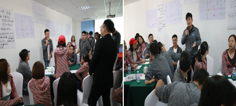 9月22日上午,在專業(yè)培訓(xùn)師的指導(dǎo)下,用貝爾賓團(tuán)隊(duì)角色理論測(cè)試每位員工的團(tuán)隊(duì)角色,結(jié)合該測(cè)試結(jié)果,進(jìn)行了一場(chǎng)充滿參與性、互動(dòng)性、實(shí)戰(zhàn)性、競(jìng)爭(zhēng)性的沙盤模擬訓(xùn)練。新員工們分組抽簽決定各自的所處的地形情況及資源狀況,通過(guò)小組合作產(chǎn)出產(chǎn)品并到統(tǒng)一的市場(chǎng)交易獲得效益,通過(guò)效益的多少等多重指標(biāo)衡量經(jīng)營(yíng)的整體狀況。培訓(xùn)中,小組成員充分地展示出了當(dāng)代年輕人開(kāi)闊的思維方式,會(huì)場(chǎng)熱鬧紛紛。他們思維活躍、分工有序,在充分分析內(nèi)外形勢(shì)的前提下,有效經(jīng)營(yíng),各小組均獲得了十分可觀的經(jīng)營(yíng)效果,得到了培訓(xùn)團(tuán)隊(duì)的一致好評(píng),最后每個(gè)小組的精彩自我點(diǎn)評(píng)再次將培訓(xùn)推向高潮。會(huì)后大家意猶未盡,午餐時(shí)分依然在探討思路和方法。