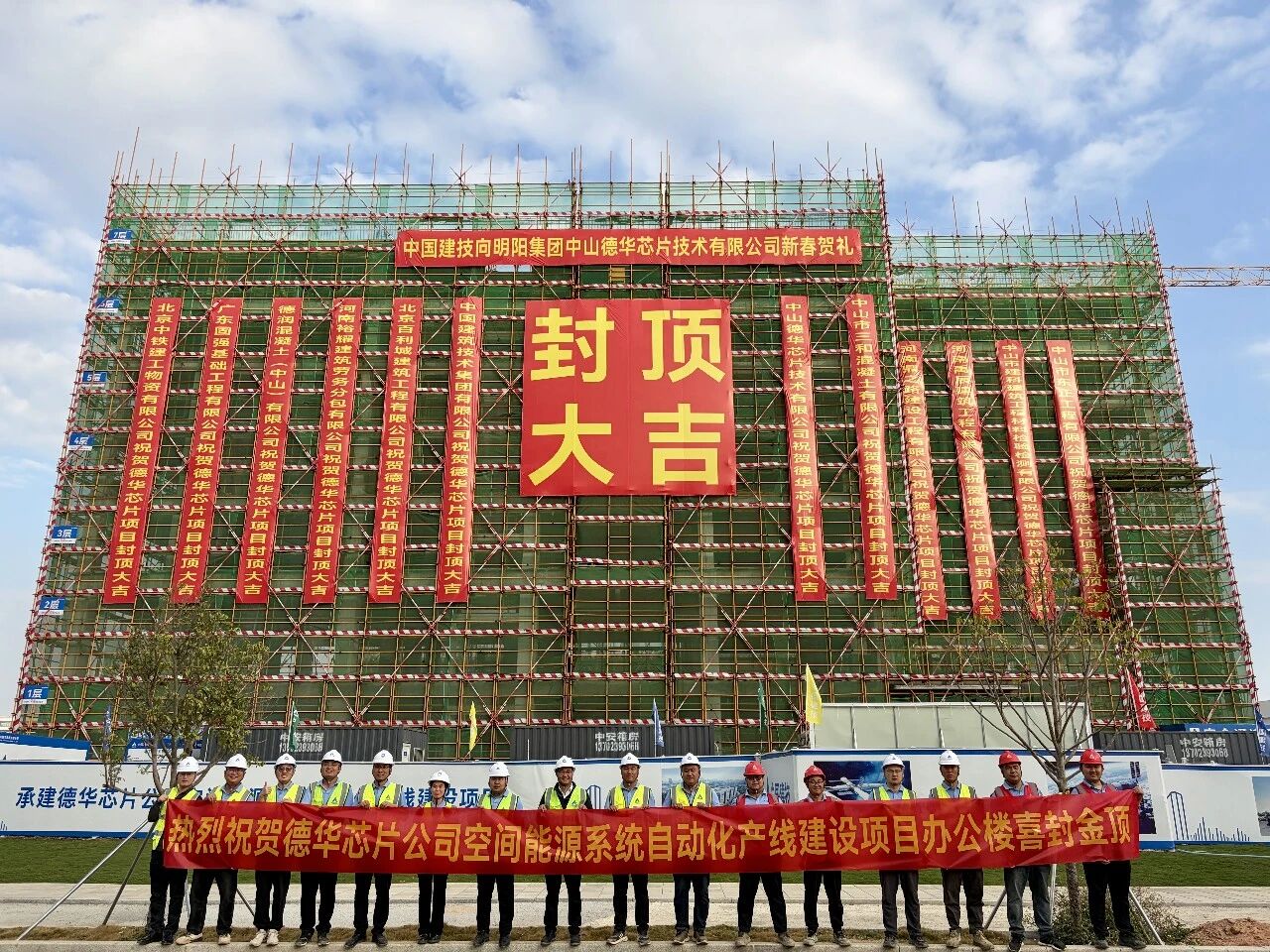2月6日,位于中山市火炬開發(fā)區(qū)民眾街道智能終端產(chǎn)業(yè)園的中山德華芯片產(chǎn)線項目迎來關(guān)鍵節(jié)點——核心建筑101#辦公樓順利完成封頂。