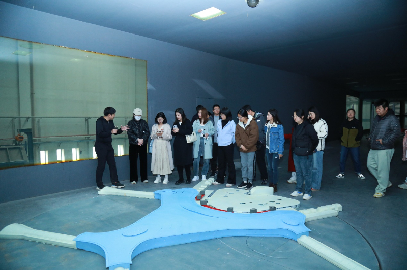 進入實驗室,首先映入眼簾的是藍綠相間的巨大“喇叭”,也是今天的“主角”——建筑風洞。“此風洞長96.5米,是直流下吹式大氣邊界層風洞,此風洞可以進行多項科學試驗,為保證建筑的安全性和舒適性提供強大的‘后盾’。”在薛原博士的帶領下,參觀人員來到“喇叭口”了解風洞動力段的運行原理,近距離看到風扇葉片的構造。沿著風洞,接著來到中間的穩定段,參觀人員深入了解風洞內部蜂窩器和阻尼網的構造和重要作用。經過風洞的兩個實驗段,最后來到擴張段,在這里風可以以更低的速度被排出。在專家的講解下,風洞每一段構造的科學秘密被逐漸揭開,參觀人員感受到建筑安全背后“科技屏障”的力量。