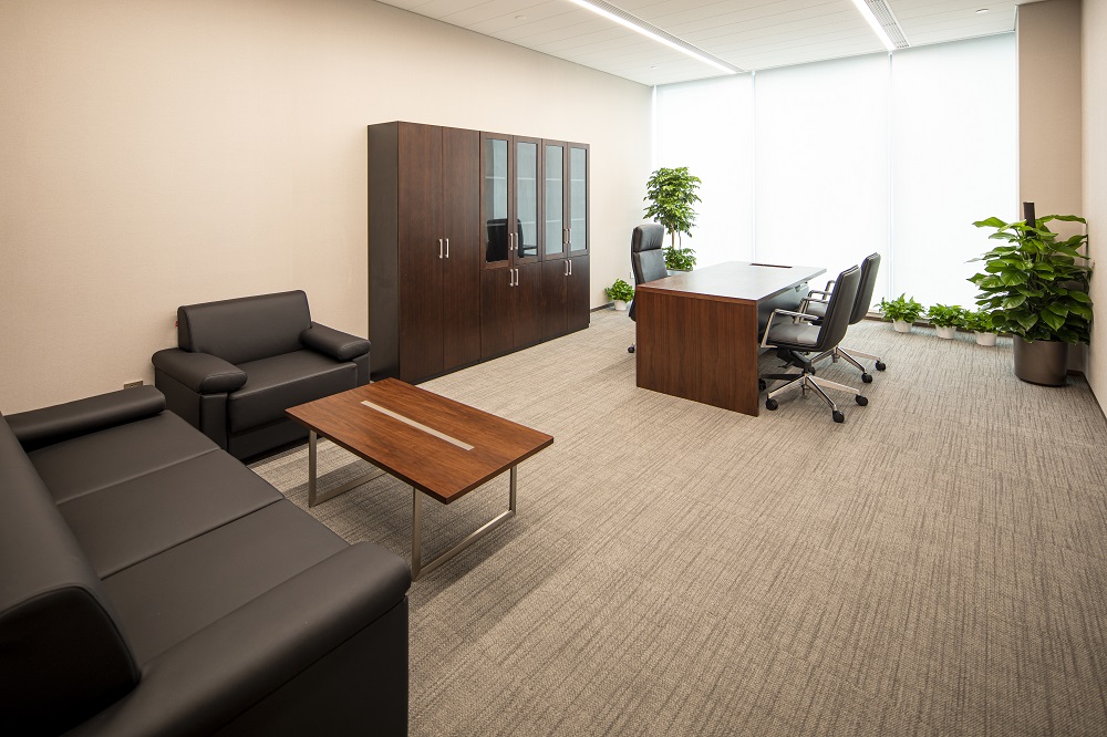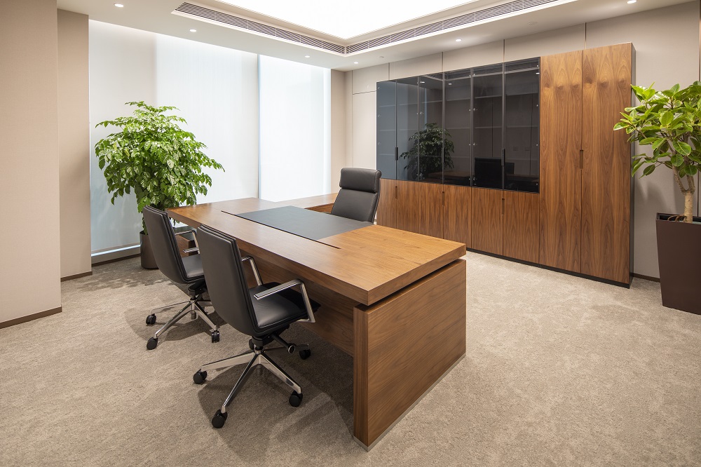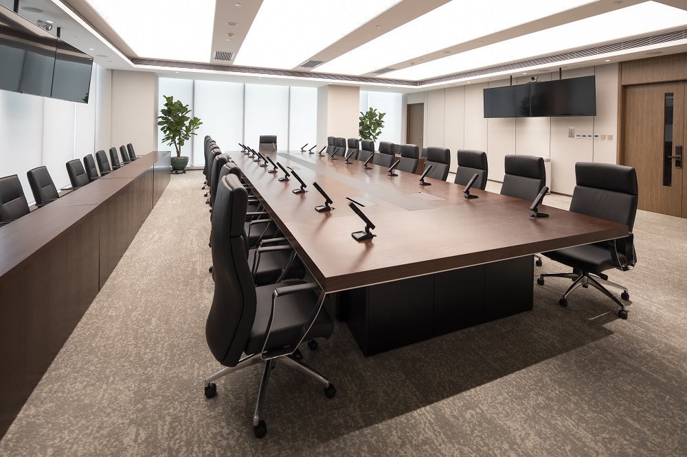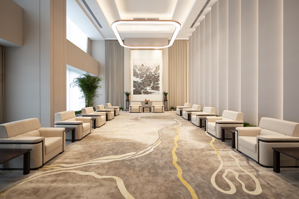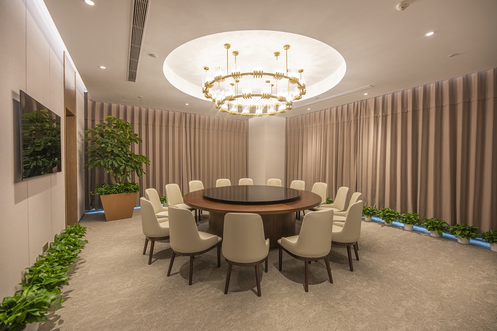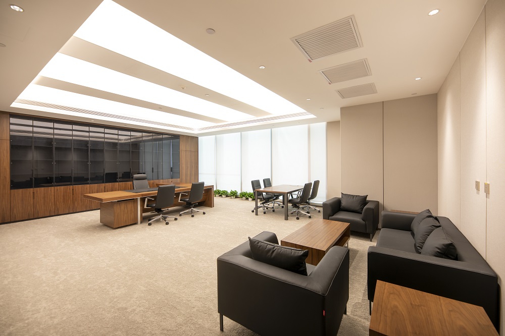 本次改造根據使用單位的需求,在維持建筑外立面和室外景觀的前提下,對原有建筑進行了平面重新布局及裝飾裝修,并根據新的使用功能對機電系統進行了調整。改造后的建筑滿足現行的建筑標準規范,并滿足使用方的現代辦公需求。以“一級央企、國內一流、具有國際影響力”的大國企業總部形象服務全國并面向國際舞臺,所以重點打造莊重、現代、統一、大氣、低調、品質的空間特點,使辦公空間代表大國形象、展示央企文化;延續傳統國企表現出的典型特征,提升內部空間整體品質。圍繞設計理念構思方案,把握規劃布局的宏觀標準,定位企業形象,提煉設計手法,營造空間氛圍;對大廳、會議、報告廳、會客、餐廳、辦公等重點空間深化設計匹配一級央企的總部形象。