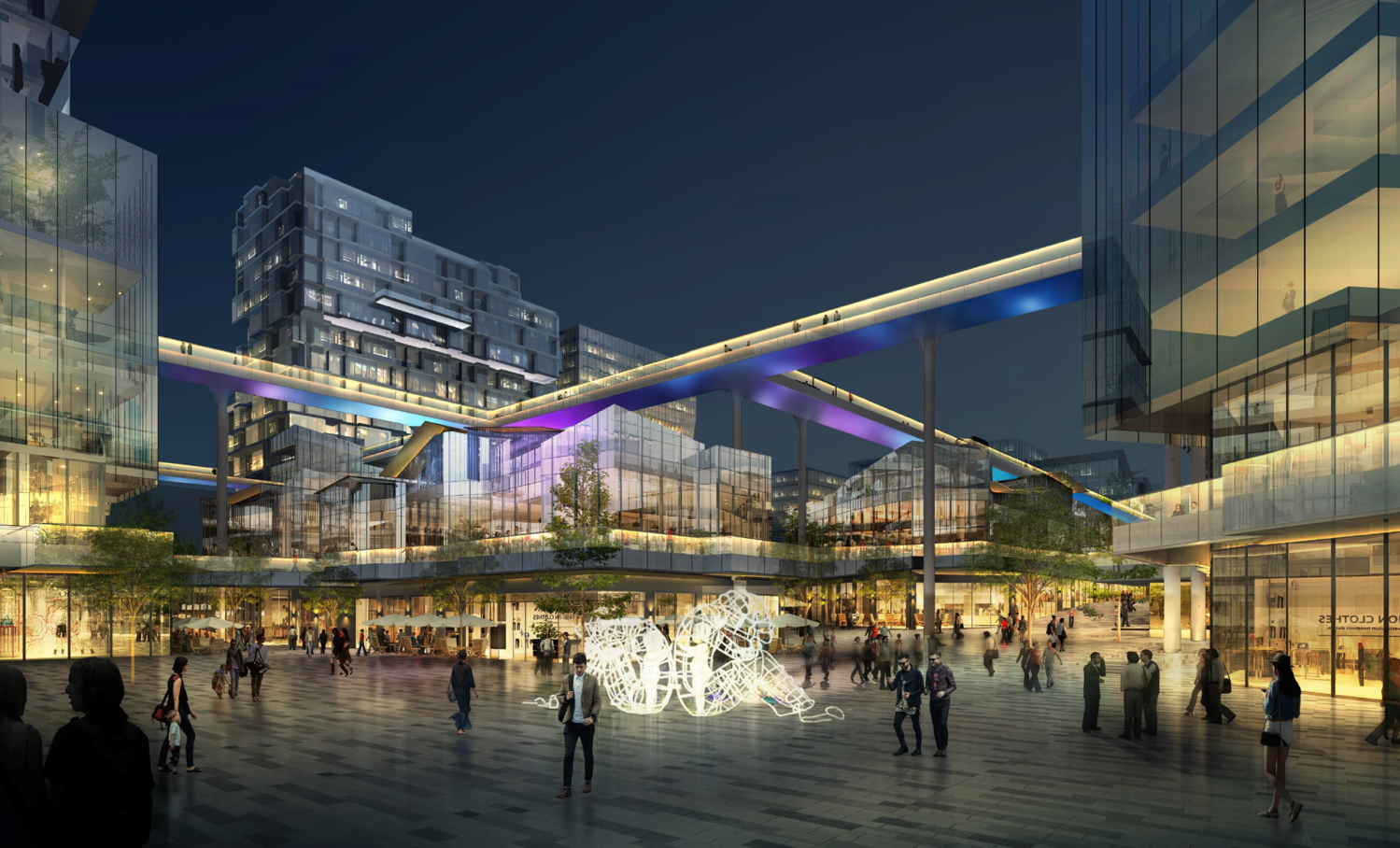 業態復雜:商場、影院、餐飲、超市、圖書館、辦公區等。