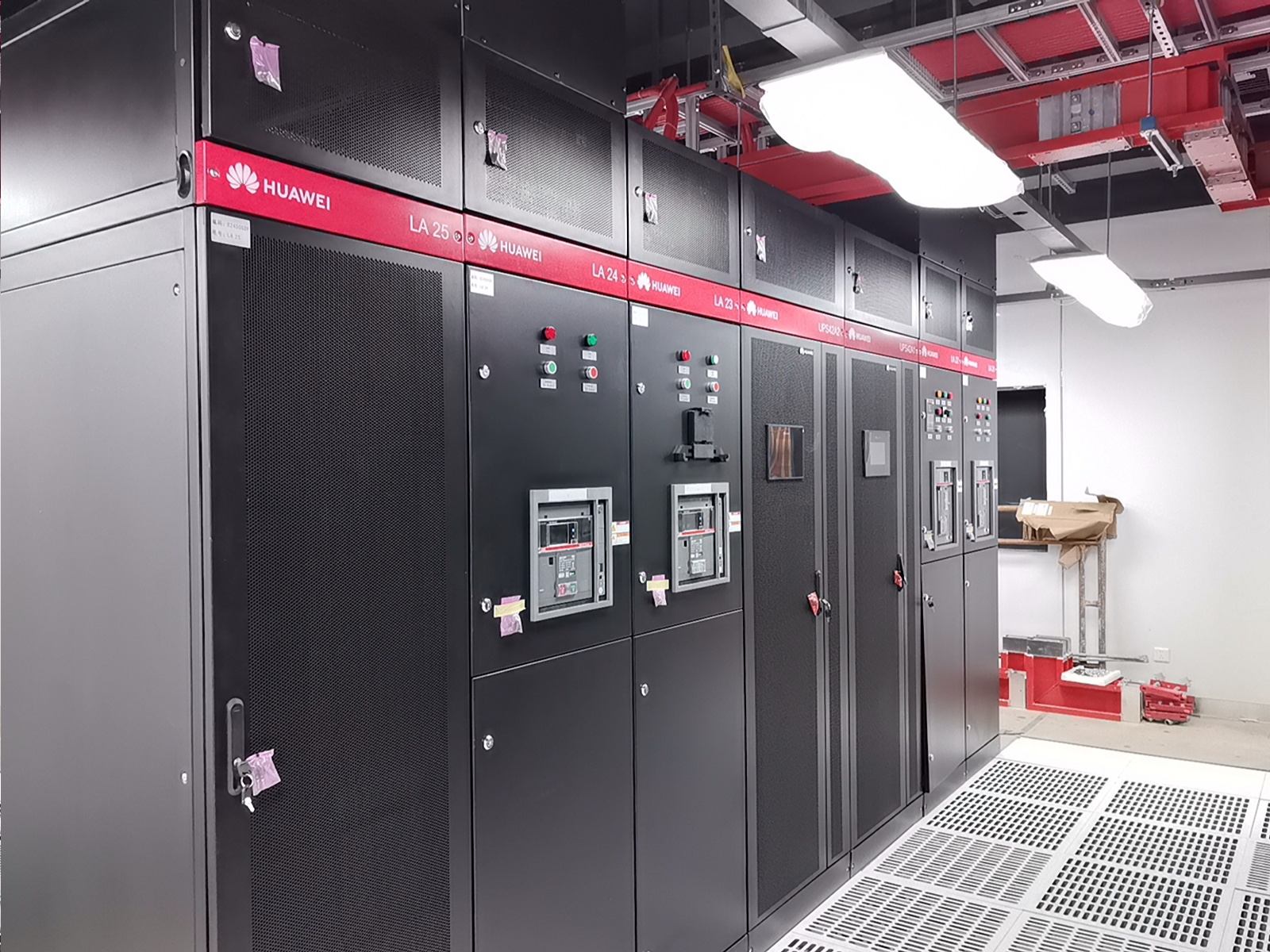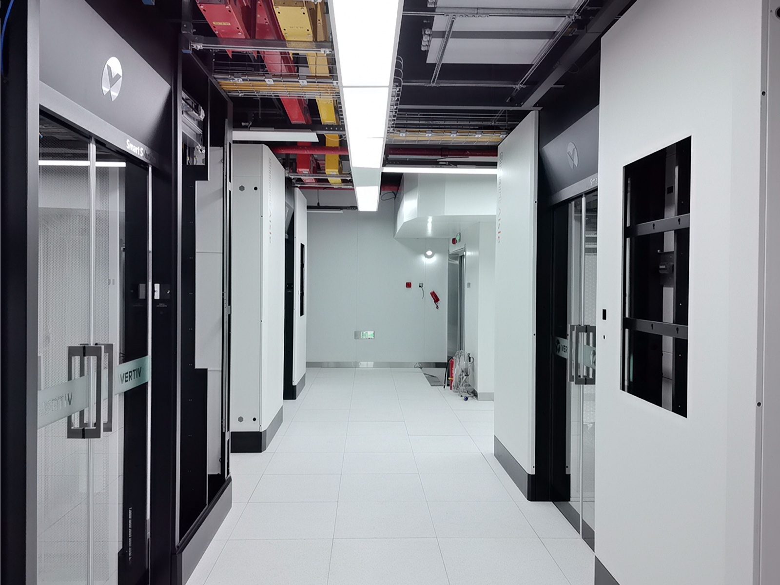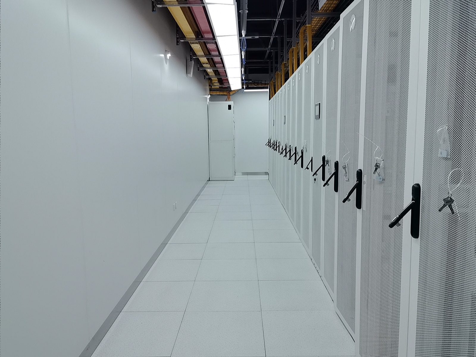 通過部署華為一體化模塊化UPS,我們實現了設備空間占用的顯著節約、連接線纜的減少以及系統可靠性的提升。維諦品牌的微模塊成套系統,包括機柜、精密空調、動環監控和電池監控等組件,不僅系統集成度高,而且可靠性強,其軟件平臺的開發響應也十分及時。西門子的密集母線和智能小母線系統,集成了母線測溫和在線監控功能,進一步增強了系統的可靠性。封閉熱通道的設計,確保了系統擁有充足的冷量儲備,從而提高了容災能力。封閉通道的玻璃觀察地板和內部管道的PVC彩殼包覆,不僅保證了整體風格的統一和協調,還提升了美觀度。仿真測試機房3,一個280平方米的屏蔽機房,其頂面殼體設計為平頂,并且封閉熱通道采用了95吋LED顯示屏整體式移門,極大地提升了觀摩機房的視覺效果。在整體顏色管理方面,我們采用了紅/黃雙色對供配電A/B路、密集母線、智能小母線、電力電纜、PDU外殼等進行區分,確保了清晰醒目。此外,采用彩鋼板墻面和夾心彩鋼板頂面,有效提升了機房的潔凈度和防塵能力。