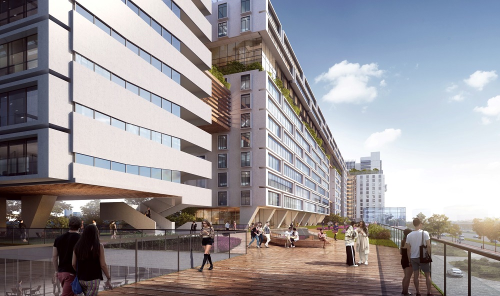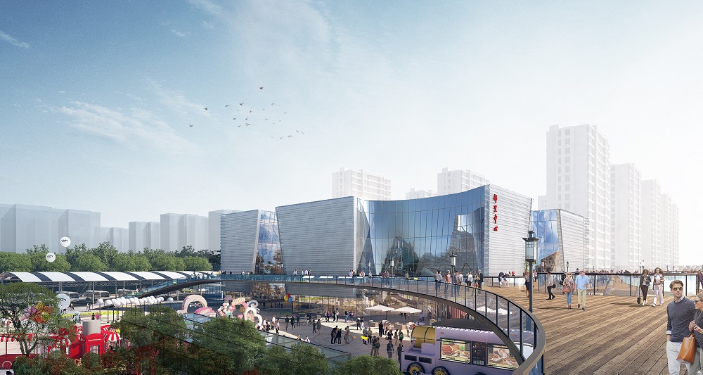 活力天街場景——構思利用300余米長的架空平臺加上400余米長起伏的景觀步道,形成總長800米、貫穿整個基地的帶狀連續步行空間(天街),避開喧囂,開放視野,一路通達,體驗活力。