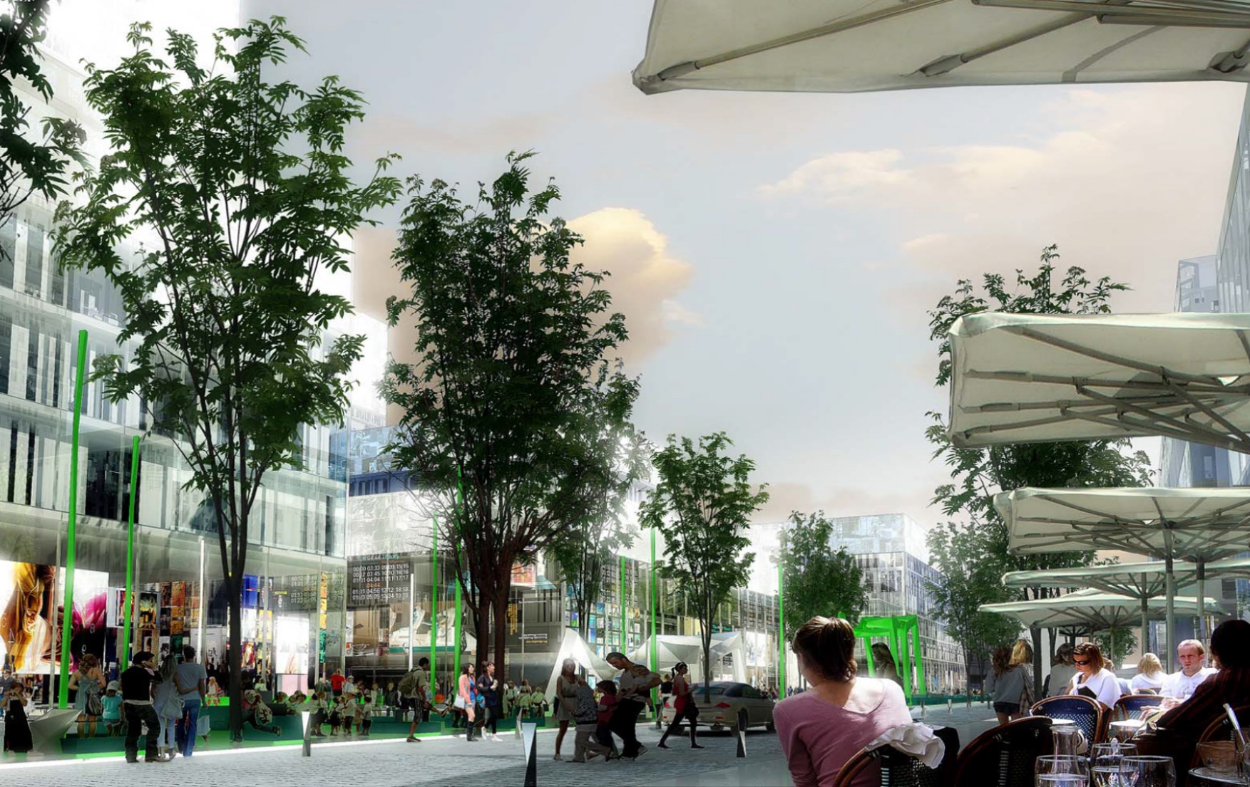 地下空間設置:地下空間由三個部分組成,分別為地下商業位于鄰近中央廣場和地鐵站的地塊,由地塊紅線分開并在地塊間以地下通道方式連接;底下停車庫設置在每個地塊下;為能夠連接到全部地塊,底下停車庫之間有連接隧道。