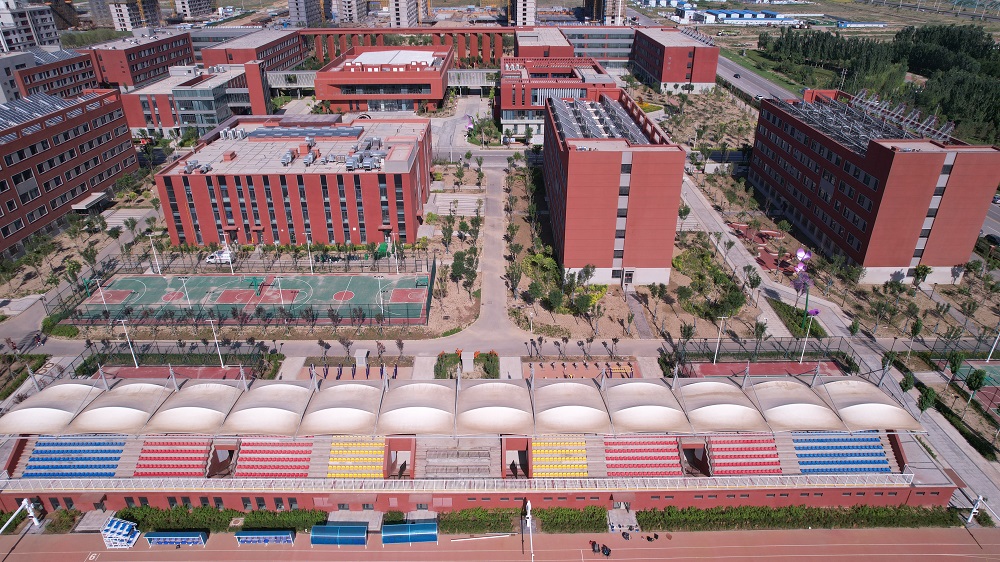 規劃布局以傳統禮教制式結合中式庭院格式,采用動靜分區過渡的規劃邏輯,將教學相長,綜合培養融入其中:建筑風格上以學院風為主,采用紅磚,鋼結構,玻璃,清水混凝土等材料,形成了現代建筑與工業風相結合的立面風格,體現了烏海的城市特點。