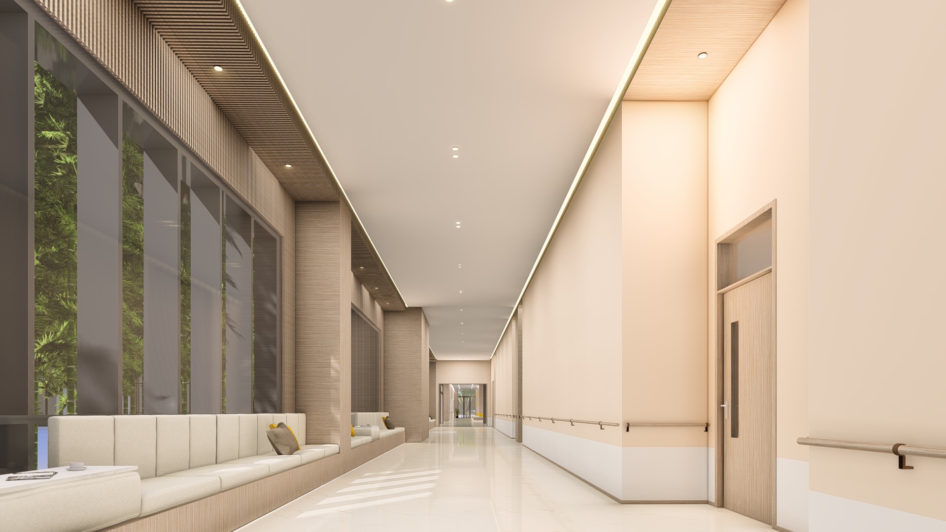 本項目以傳統空間的“院”為切入點,兩個功能主體通過高低不同的體量聚落成三個層級的院落空間,通過連續起伏的坡屋頂融通勾連,以喚醒老人心中留存的空間記憶。