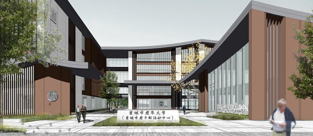 宜城市老年大學項目地處宣城市市中心偏南,宛陵湖景區旁,位于沿水陽江南大道的文化帶上,與宣城市圖書館、宣城市博物館等文化建筑毗鄰。總建筑面積:29387㎡,其中地上建筑面積23296㎡,地下建筑面積6091㎡,包含市老年大學和老干部活動中心。