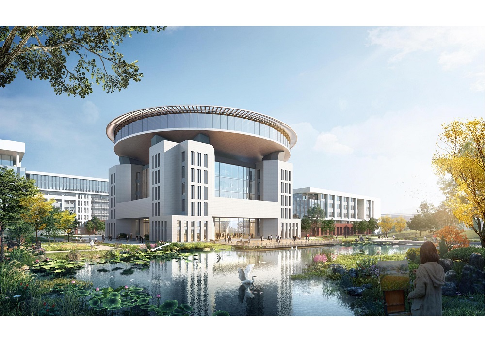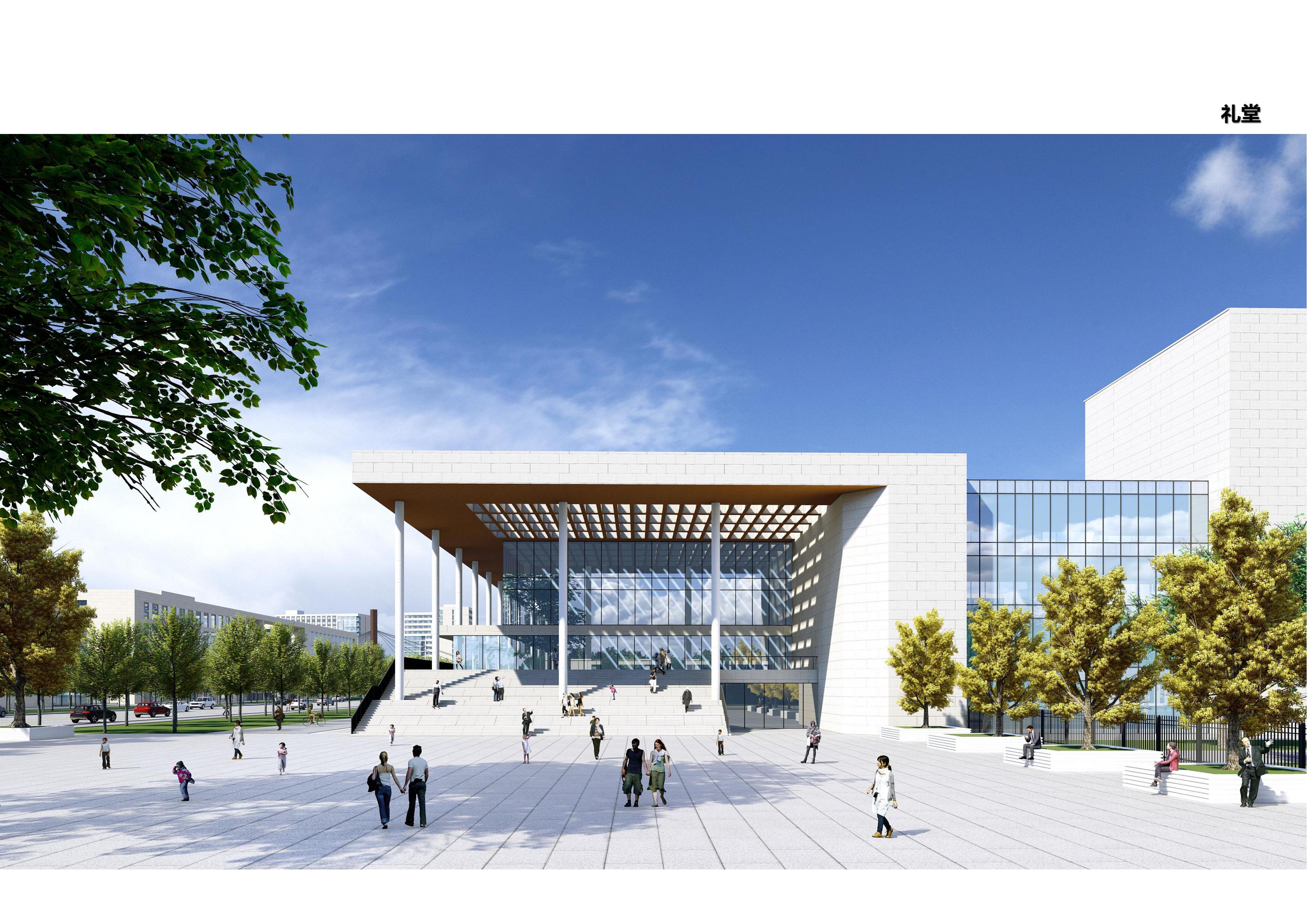 項(xiàng)目核心文化建筑:圖書館與圖書綜合樓,采用左右對仗形式設(shè)置于東西校區(qū)中心位置。圖書綜合樓以“圓”為頂;圖書館以“方”為體,體現(xiàn)“天圓地方” 的中國傳統(tǒng)宇宙觀 。