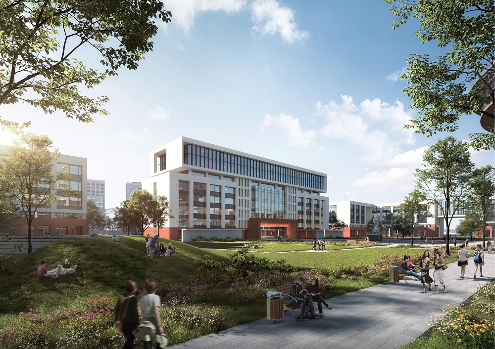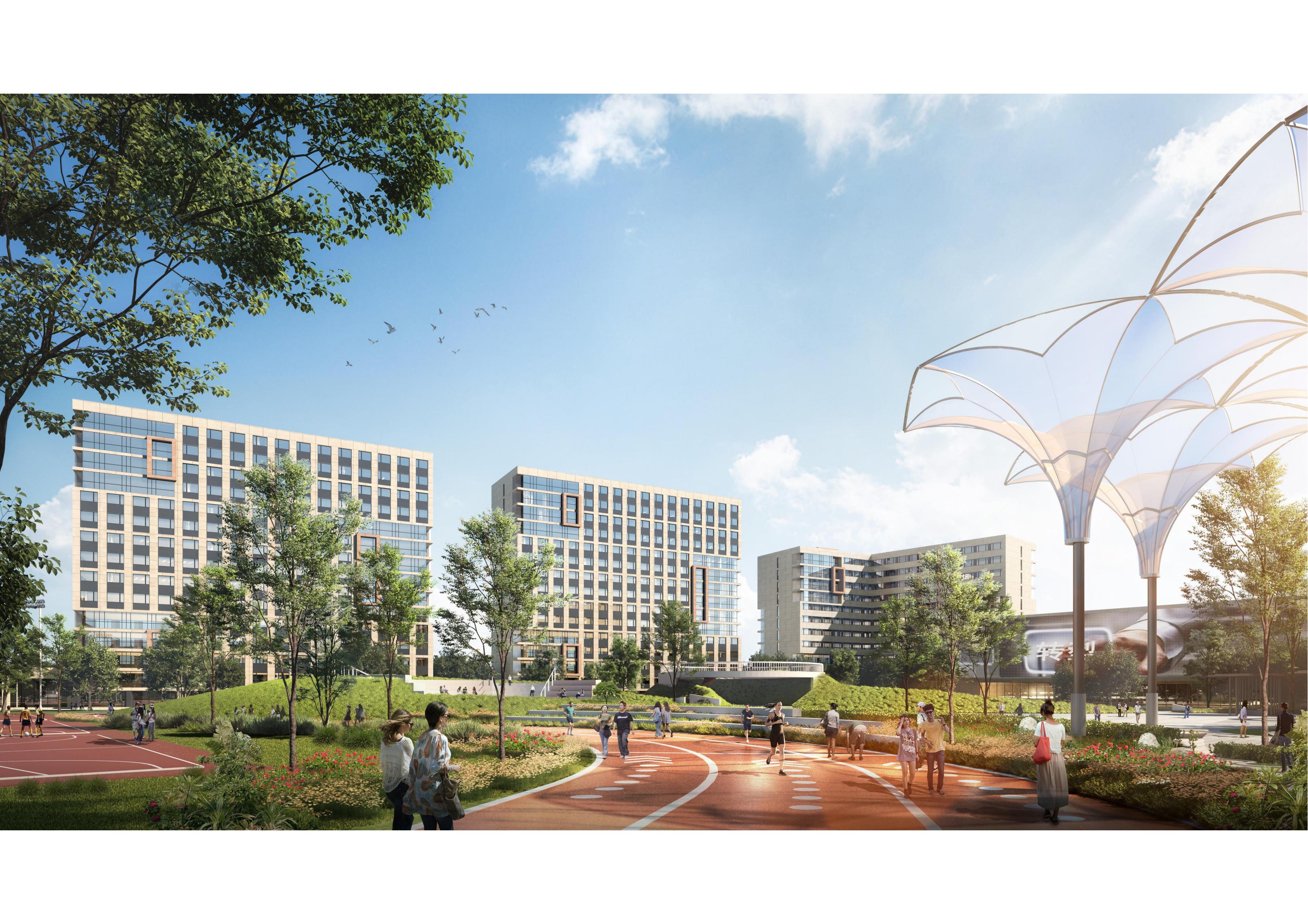 項(xiàng)目總占地426.83畝,以“自成一城”的氣勢跳出了現(xiàn)有格局。在前期規(guī)劃設(shè)計(jì)中,我們借鑒了《周禮·考工記》中“匠人營國,方九里,旁三門。國中九經(jīng)九緯,經(jīng)涂九軌。”和“南園北苑,前朝后市”的中國傳統(tǒng)城市營造手法,同時(shí)融入本土中原文化符號(hào),引古論今,從城市層面打造屬于棗莊的“花園校園”。