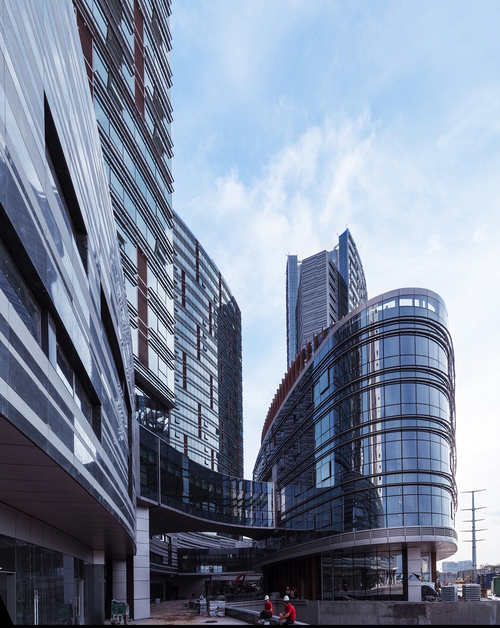 濱河商務(wù)中心總建設(shè)用地面積約28261平方米, 總建筑面積約20萬平方米,其中地上部分建筑面積約14萬平方米,包括一棟138米超高層寫字樓、三棟100米高層公寓及辦公樓以及裙房商業(yè)、旗艦店與酒店等商業(yè)服務(wù)設(shè)施;地下部分建筑面積約6萬平方米,主要包括下沉商街、車庫與設(shè)備機(jī)房等輔助設(shè)施。