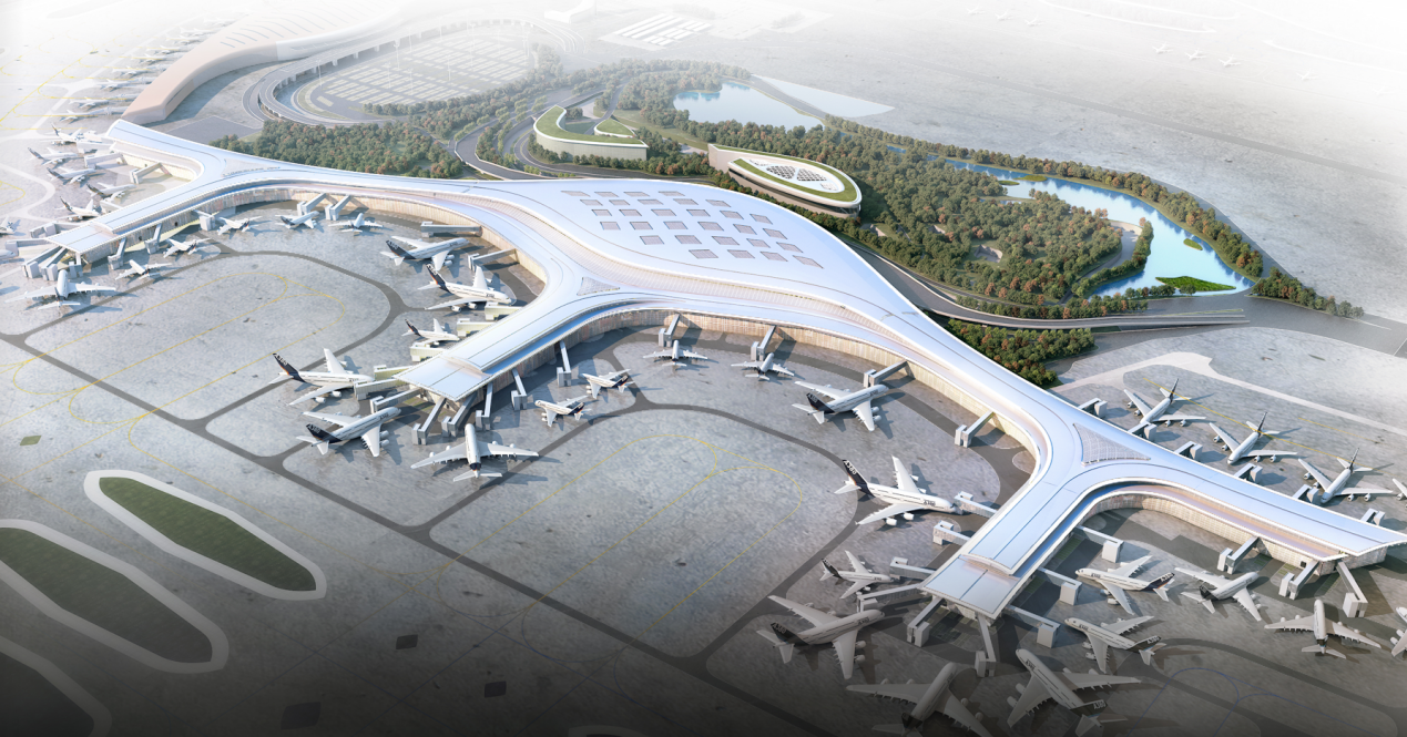 合肥新橋國際機(jī)場(chǎng)T2航站樓總建筑面積約36.98萬平方米,采用“雙港灣+雙L”的建筑構(gòu)型,主樓面寬約400米、進(jìn)深約180米。南、北兩側(cè)指廊寬42米,為國內(nèi)候機(jī)指廊;中指廊寬54米,為國際候機(jī)指廊。主體結(jié)構(gòu)為鋼筋混凝土框架,屋頂為大跨度空間鋼結(jié)構(gòu)體系。